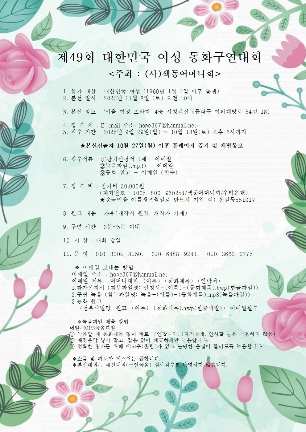 제3회 대한민국 교사 동화구연대회 수상자 명단